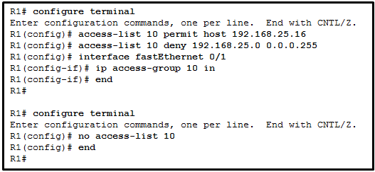access-list 103 deny tcp 192.168.10.0 0.0.0.255 any eq 23