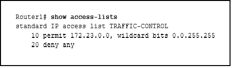 Refer to the exhibit. A network administrator needs to add an ACE to the TRAFFIC-CONTROL ACL that will deny IP traffic from the subnet 172.23.16.0/20. Which ACE will meet this requirement?