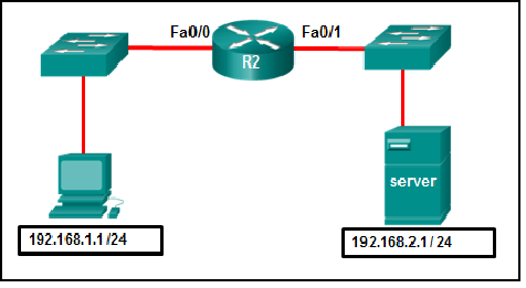 Refer to the exhibit. A network administrator wants to permit only host 192.168.1.1 /24 to be able to access the server 192.168.2.1 /24. Which three commands will achieve this using best ACL placement practices? (Choose three.)