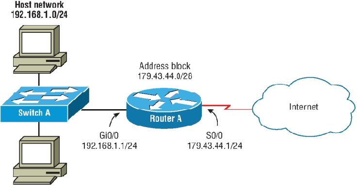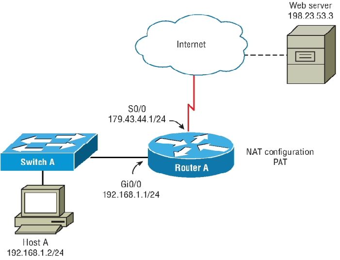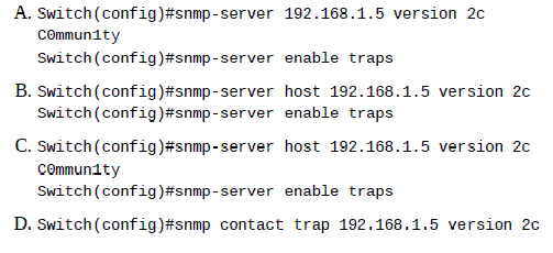 Welcome to your CCNA-IP_SERVICE 1. 1. Which method will allow you to use RFC 1918 addresses for Internet requests? A. CIDR B. Classful addressing C. NAT D. VPN None 2. 2. In the following exhibit, what is the inside local IP address? A. 192.168.1.2 Host A B. 192.168.1.1 Router A Gi0/0 C. 179.43.44.1 Router A S0/0 D. 198.23.53.3 web server None 3. 3. In the following exhibit, what is the inside global IP address? A. 192.168.1.2 Host A B. 192.168.1.1 Router A Gi0/0 C. 179.43.44.1 Router A S0/0 D. 198.23.53.3 web server None 4. 4. In the following exhibit, what is the outside global IP address? A. 192.168.1.2 Host A B. 192.168.1.1 Router A Gi0/0 C. 179.43.44.1 Router A S0/0 D. 198.23.53.3 web serve None 5. 5. Which command will allow you to view the NAT translations active on the router? A. Router#show ip nat translations B. Router#show nat translations C. Router#debug ip nat translations D. Router#show translations nat None 6. 6. Which command will display an overview of the current number of active NAT translations on the router, as well as other overview information? A. Router#show ip nat translations B. Router#show ip nat summary C. Router#show ip nat status D. Router#show ip nat statistics None 7. 7. In the following exhibit, which command will configure static NAT for the internal web server? A. RouterA(config)#ip nat inside source static 192.168.1.3 179.43.44.1 B. RouterA(config)#nat source static 192.168.1.3 179.43.44.1 C. RouterA(config)#ip nat static 192.168.1.3 179.43.44.1 D. RouterA(config)#ip nat source static 192.168.1.3 179.43.44.1 None 8. 8. In the following exhibit, the enterprise owns the address block of 179.43.44.0/28. Which command will create a NAT pool for Dynamic NAT? A. RouterA(config)#ip nat pool EntPool 179.43.44.0/28 B. RouterA(config)#ip pool EntPool 179.43.44.2 179.43.44.15netmask 255.255.255.0 C. RouterA(config)#ip nat pool EntPool 179.43.44.1 179.43.44.15netmask 255.255.255.240 D. RouterA(config)#ip nat pool EntPool 179.43.44.2 179.43.44.15netmask 255.255.255.0 None 9. 9. When configuring dynamic NAT, why must you configure an access list? A. The access list allows incoming access from outside global addresses. B. The access list allows outgoing access from inside local addresses. C. The access list allows outgoing access from outside local addresses. D. The access list allows outgoing access from inside global addresses. None 10. 10. Which command will wipe out all current NAT translations in the NAT table? A. Router#no ip nat translation B. Router#clear ip nat translation C. Router#clear ip nat translation * D. Router#clear ip nat None 11. 11. Which command will allow you to see real-time network address translations? A. Router#show ip translations B. Router#debug ip nat C. Router#debug ip translations D. Router#show ip nat None 12. 12. In the following exhibit, which command will configure Port Address Translation? A. RouterA(config)#access-list 1 permit 192.168.1.00.0.0.255RouterA(config)#ip nat pool EntPool 179.43.44.1179.43.44.1RouterA(config)#ip nat inside source list 1 poolEntPoolB. RouterA(config)#ip nat pool EntPool 179.43.44.1179.43.44.1netmask 255.255.255.0RouterA(config)#ip nat source pool EntPoolC. RouterA(config)#access-list 1 permit 192.168.1.00.0.0.255RouterA(config)#ip nat pool EntPool 179.43.44.1179.43.44.1 netmask 255.255.255.0RouterA(config)#ip nat inside source list 1 poolEntPool overloadD. RouterA(config)#access-list 1 permit 192.168.1.00.0.0.255RouterA(config)#ip nat pool EntPool 179.43.44.1179.43.44.1netmask 255.255.255.0RouterA(config)#ip nat inside source list 1 poolEntPool A. Option A B. Option B C. Option C D. Option D None 13. 13. Which command will allow your router to synchronize with a time source of 129.6.15.28? A. Router(config)#ntp server 129.6.15.28 B. Router#ntp server 129.6.15.28 C. Router(config)#ntp client 129.6.15.28 D. Router#ntp client 129.6.15.28 None 14. 14. Which command configures the router or switch to trust its internal time clock? A. Router(config)#ntp server B. Router(config)#ntp master C. Router(config)#ntp clock source D. Router(config)#ntp trusted None 15. 15. Which command will allow you to see if the router or switch is using NTP? A. Router#show clock detail B. Router#show ntp C. Router#show time D. Router#show time source None 16. 16. Which command will allow you to view the time details from a configured server? A. Router#show clock detail B. Router#show ntp detail C. Router#show ntp associations detail D. Router#show ntp skew None 17. 17. Which protocol and port does NTP use for time synchronization by default? A. TCP/161 B. TCP/123 C. UDP/69 D. UDP/123 None 18. 18. Which command will help you diagnose if the router or switch is getting an answer back from an NTP server? A. Router#show ntp B. Router#show ip ntp C. Router#debug ntp packets D. Router#debug ntp messages None 19. 19. Which is a best practice for setting up NTP? A. Always configure the time source to a DNS address. B. Configure all devices to a public NTP server. C. Configure all devices to different NTP servers for redundancy. D. Configure all devices as master servers. None 20. 20. Which command will allow you to view the time drift observed by NTP? A. Router#show ntp B. Router#show ip ntp status C. Router#show ntp status D. Router#debug ntp drift None 21. 21. Which command sets the time zone of a router for Pacific Standard Time? A. Router(config)#clock timezone pacific B. Router(config)#clock timezone pst -8 0 C. Router(config)#timezone pacific D. Router(config)#timezone pst -8 None 22. 22. You are configuring NTP on your switch. You want to configure the switch so if any interface fails, NTP will still be available. Which type of interface should you use? Choose the best answer. A. Tunnel interface B. NTP interface C. Loopback interface D. Switched Virtual Interface (SVI) None 23. 23. Which command will configure NTP to use the internal loopback interface? A. Switch(config)#ntp source loopback 0 B. Switch(config)#ntp loopback 0 C. S